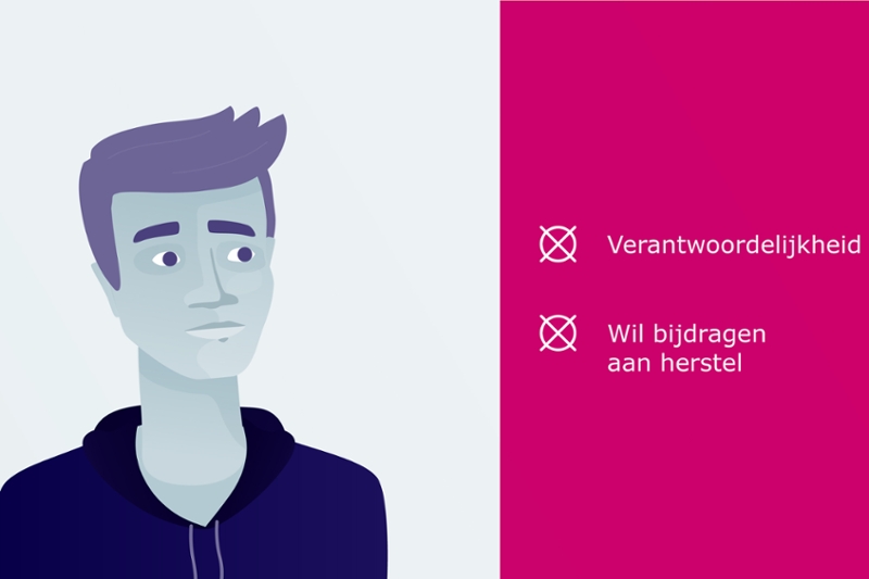 De verdachte wil helpen bij het herstel van het slachtoffer of de nabestaanden. De verdachte neemt verantwoordelijkheid voor wat hij of zij heeft gedaan en wil in gesprek met het slachtoffer.