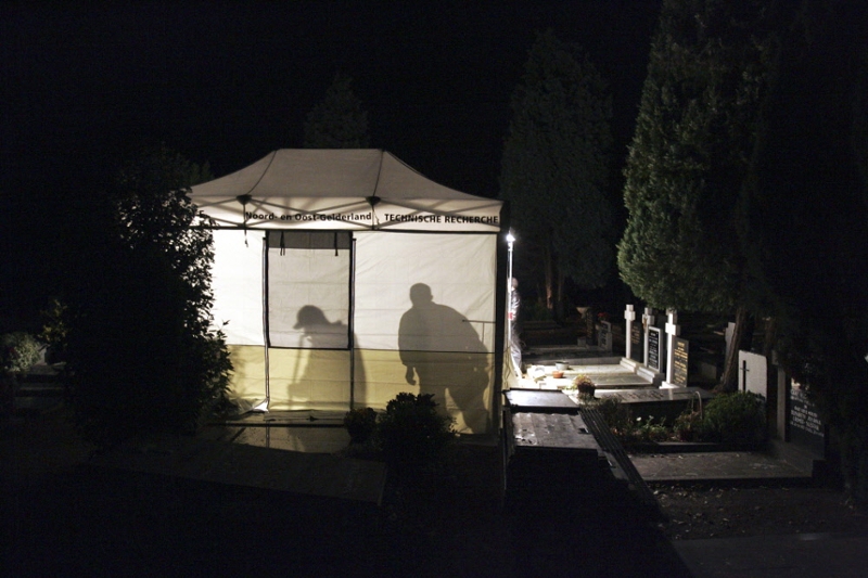 9 november 2006, politie doet onderzoek bij het graf van het slachtoffer [foto: Hollandse Hoogte]