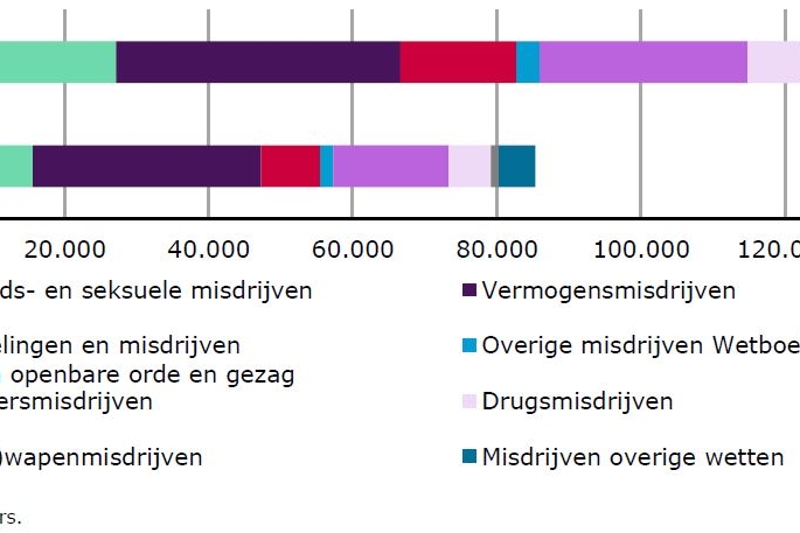 De politie registreerde vorig jaar 817.000 misdrijven, 4 procent meer dan een jaar eerder. Maar nog altijd 35% minder dan de 1,25 miljoen in 2009. Sindsdien daalde de geregistreerde criminaliteit lange tijd. Een deel van de criminaliteit blijft wel buiten beeld, omdat bijvoorbeeld mensen geen aangifte doen of omdat het gaat om zogenoemde ‘slachtofferloze’ delicten als drugshandel. Ook enquêtes onder slachtoffers laten overigens vergelijkbare dalingen zien.