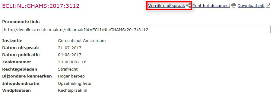 Door deze ‘verrijkte uitspraak’ aan te bieden wordt de (vaak complexe) juridische achtergrond van een rechterlijke beslissing beter zichtbaar. De normale, officiële uitspraak – zonder linkjes en alleen met platte tekst – blijft ook beschikbaar.