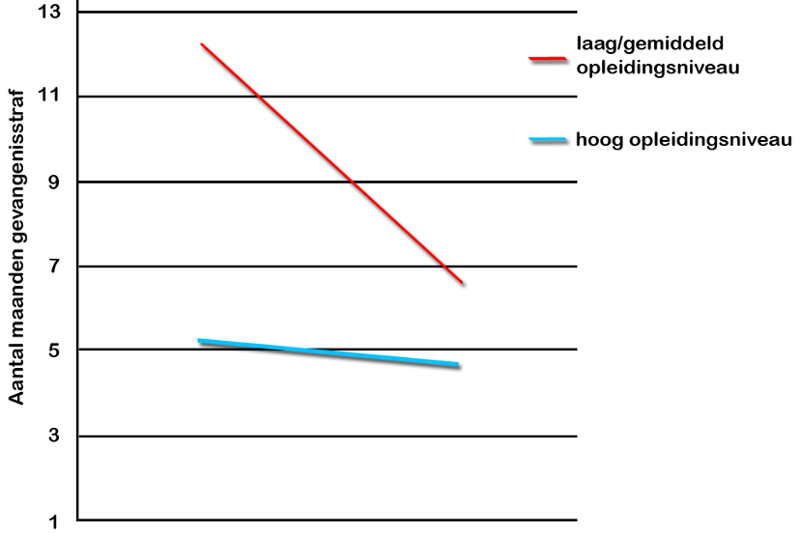 Uit het onderzoek blijkt dat als de groep hoger opgeleiden op de stoel van de rechter zit, gemiddeld een celstraf van bijna 5 maanden wordt opgelegd. De lager opgeleiden komen tot een gemiddelde straf van ruim 9 maanden. Hoe lager het opleidingsniveau, hoe harder de roep om strengere straffen.