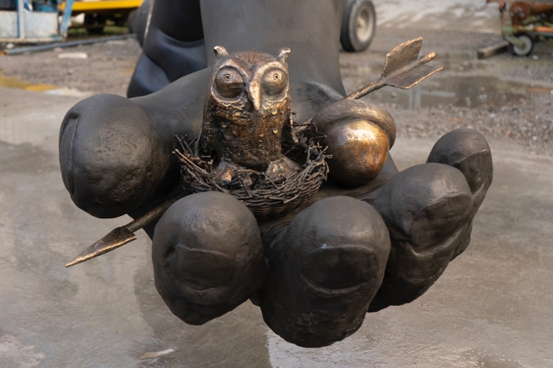 Het kunstwerk ‘Love or Generosity’ beeldt een poortwachter van de rechtbankRechtsprekend orgaan dat in eerste aanleg oordeelt over zaken zoals echtscheidingen, misdrijven, geldvorderingen, en de meeste bestuursrechtelijke geschillen. Ook wordt met het begrip rechtbank het gebouw aangeduid waarin de rechtbank zetelt. uit: geen bewaker maar een zachtaardig persoon die even ontspanning en troost biedt. Het beeld is ruim vijf meter hoog waardoor het goed past bij het nieuwe gerechtsgebouw dat tien verdiepingen telt. Ondanks de hoogte van het beeld zorgt de vriendelijke houding van de ‘poortwachter’ ervoor dat het beeld niet afschrikt maar juist aantrekt en nieuwsgierig maakt.