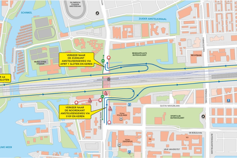 Deze zomer zijn er veel wegwerkzaamheden en wegafsluitingen in Amsterdam. Dit is ook het geval rondom de Zuidas, waardoor de rechtbank tijdelijk slechter bereikbaar is. Hou dus rekening met extra reistijd als je naar de rechtbank gaat met de auto of de trein.